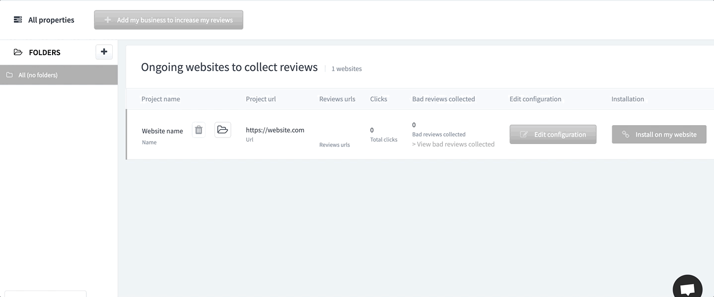 Vous pouvez installer un widget simple sur vos sites web pour augmenter le nombre d'avis et inciter vos visiteurs à laisser un avis sur votre site. C'est la solution idéale pour toute entreprise, même locale, souhaitant augmenter le nombre d'avis clients. Compatible avec les avis Google, Yelp et Facebook, cette technologie permet d'augmenter le nombre d'avis organiques en attirant les visiteurs vers la page d'avis.