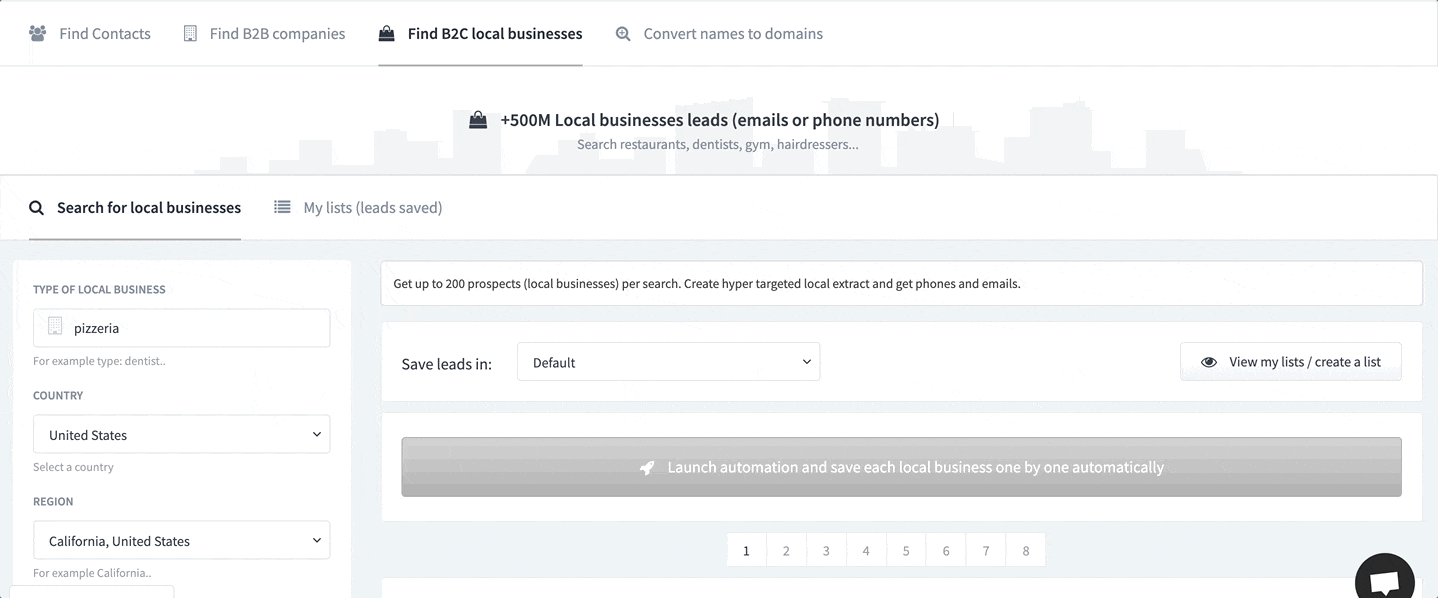 Trouvez des entreprises locales B2C avec leurs e-mails